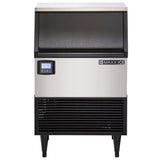 Be sure you always have plenty of ice available with the Maxx Ice Intelligent Series Self-Contained Ice Machine. Intelligent Series Ice Machines are designed to consume up to 40% less water than similar competitor units and produce ice up to 20% faster. Maxx Ice Intelligent Series self-contained, air-cooled ice machines are perfect for freestanding or built-in applications for foodservice, hospitality and entertainment industries. The durable stainless steel and black trim exterior is easy to clean and service. This commercial ice machine will produce up to 152 lbs (69 kg) of half dice ice cubes daily and has a storage capacity of up to 75 lbs (34 kg), providing the right amount of ice for restaurants, cafeterias, bars, bakeries and cafes. The polyethylene storage bin liner includes an antimicrobial agent for improved sanitation. The interior LED light illuminates the ice when the bin door is open. The digital controls and front-breathing design with vertical evaporator will deliver years of reliable ice production. Supplied with four 6” black leveling legs and 5-15P NEMA plug for easy installation. The ice maker meets UL and NSF guidelines and is available in 120V and international voltage upon request. Covered by the Maxx Ice One-Year Limited Warranty.