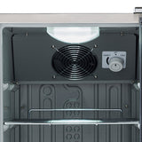 Designed for commercial outdoor use, the Maxx Ice Compact Outdoor Refrigerator elevates your entertainment space by providing quick and convenient access to your favorite food and beverages. This stainless steel refrigerator can be built-in or freestanding, and the reversible door with a full-length handle can be set up for right- or left-hand opening. The refrigerator offers 3 cubic feet of storage with 4 metallic wire shelves to organize food and beverages. The shelves extend to give you easy access to soft drinks, beer, bottled water, condiments, snacks, meat and more! Plus, the bottom shelf is designed to hold wine bottles. An electronic control panel with LCD digital display lets you monitor the unit’s temperature, which is maintained at 35°F to 40°F (1°C to 5°C). Energy-efficient LED lighting automatically turns on when the door opens to illuminate the contents so you can easily see what’s inside. Polyurethane foam insulation provides outstanding thermal regulation and energy efficiency. Adjustable leveling legs ensure your refrigerator is level on any floor. This refrigerator is equipped with an integrated condensate evaporator; therefore, no drain line connection is needed. With its durable stainless steel exterior and easy-to-clean ABS interior, the Maxx Ice Compact Outdoor Refrigerator is a smart choice for any establishment.