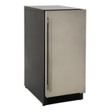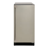 Enjoy clear, full dice, slab-style ice with the Maxximum 15" Indoor Ice Machine. This full dice ice maker machine produces up to 50 pounds of full dice slab style clear ice cubes per day, and the bin stores 26 pounds of ice cubes, ensuring you always have the good ice on hand for entertaining or adding to drinks, cocktails, smoothies and more. The insulated ice bin will keep ice from melting too fast, and the included ice scoop makes scooping and serving easy. With its matte black prepainted steel exterior and white interior illuminated by a flush mounted multi color LED light, this ice machine will complement any space in your home. This stainless steel model includes a 23" long, 3/4" diameter stainless steel handle with faceted standoffs. This ice machine features auto shut-off when the ice bin is full and an alert notification when it's time to initiate the easy cleaning process. Designed to install like a cabinet, the Maxximum Ice Machine comes with zero clearance pin hinges. The fixed toe-grille design allows for alignment with adjacent cabinetry. Designed with user-friendly controls and an attractive design that will complement your home, the Maxximum Ice Machine provides a steady supply of full dice slab ice cubes. Whether for daily use or entertaining guests, this clear ice maker is a valuable addition to your kitchen. Covered by the Maxximum One-Year Parts & On-Site Labor Limited Warranty for installation in residential applications.